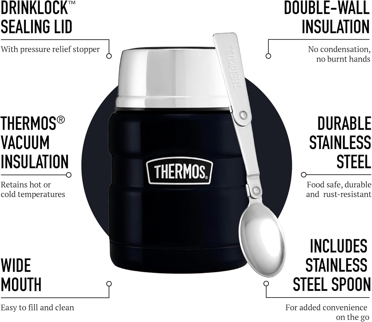 - Temperature Control: This lunch thermos remains cool to touch with hot contents and sweat-proof with cold, providing safe handling and preventing messy condensation on surfaces